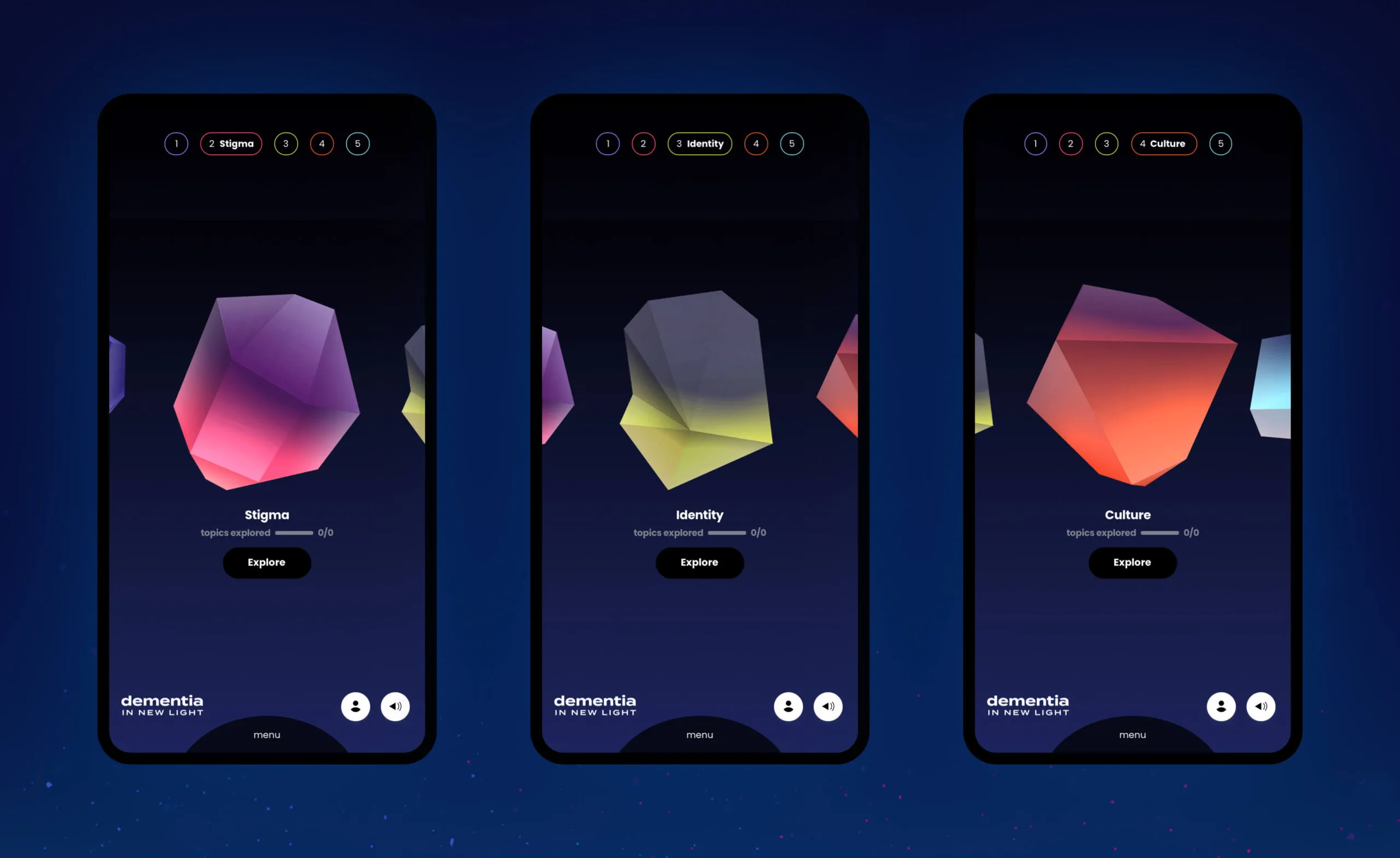 Dementia in New Light is a digital learning experience that builds upon the research-driven production, Cracked: New Light on Dementia. By following individuals with dementia and their families, it aims to challenge the stigma around dementia and its care. Forge collaborated with a diverse team of researchers and artists and applied co-design methodologies to create an accessible educational experience, fostering a reimagining of dementia and improved support for those impacted.