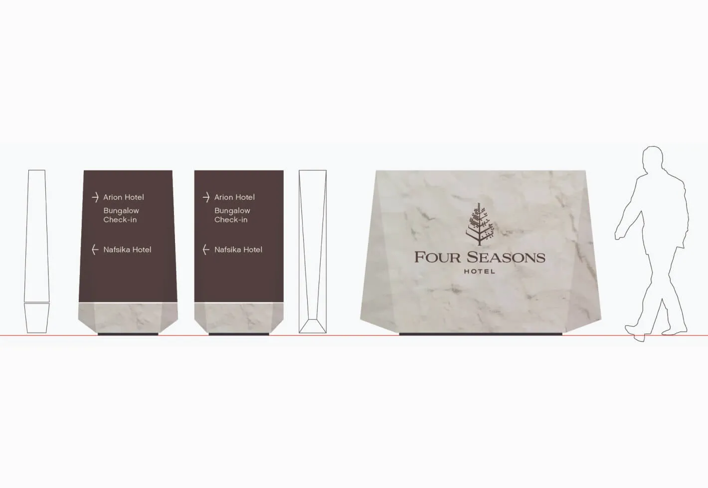 Four Seasons Astir Palace is located on the Athens Riviera where guests can enjoy a high-end beach resort escape in close proximity to the historic heart of Athens. Beginning with a careful analysis and definition of the target audience, Four Seasons looked to Forge to develop a signage and wayfinding program that would act as a seamless extension of Four Seasons’ white glove service.