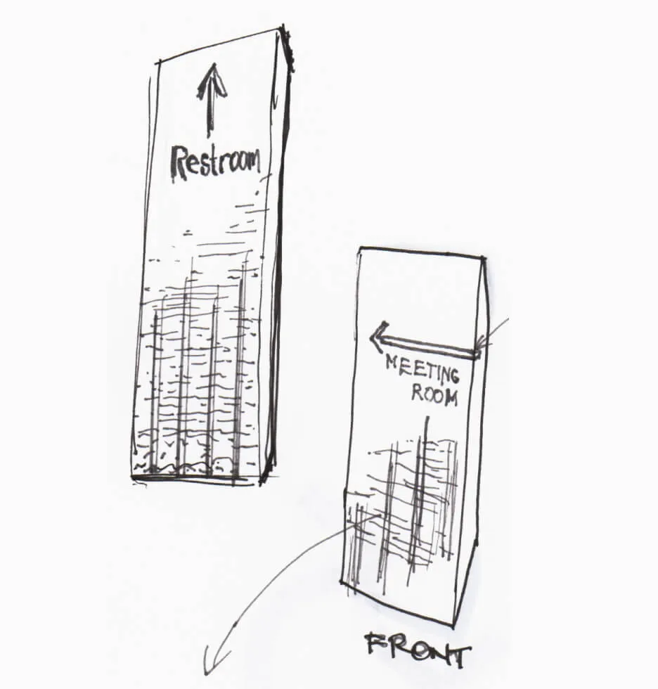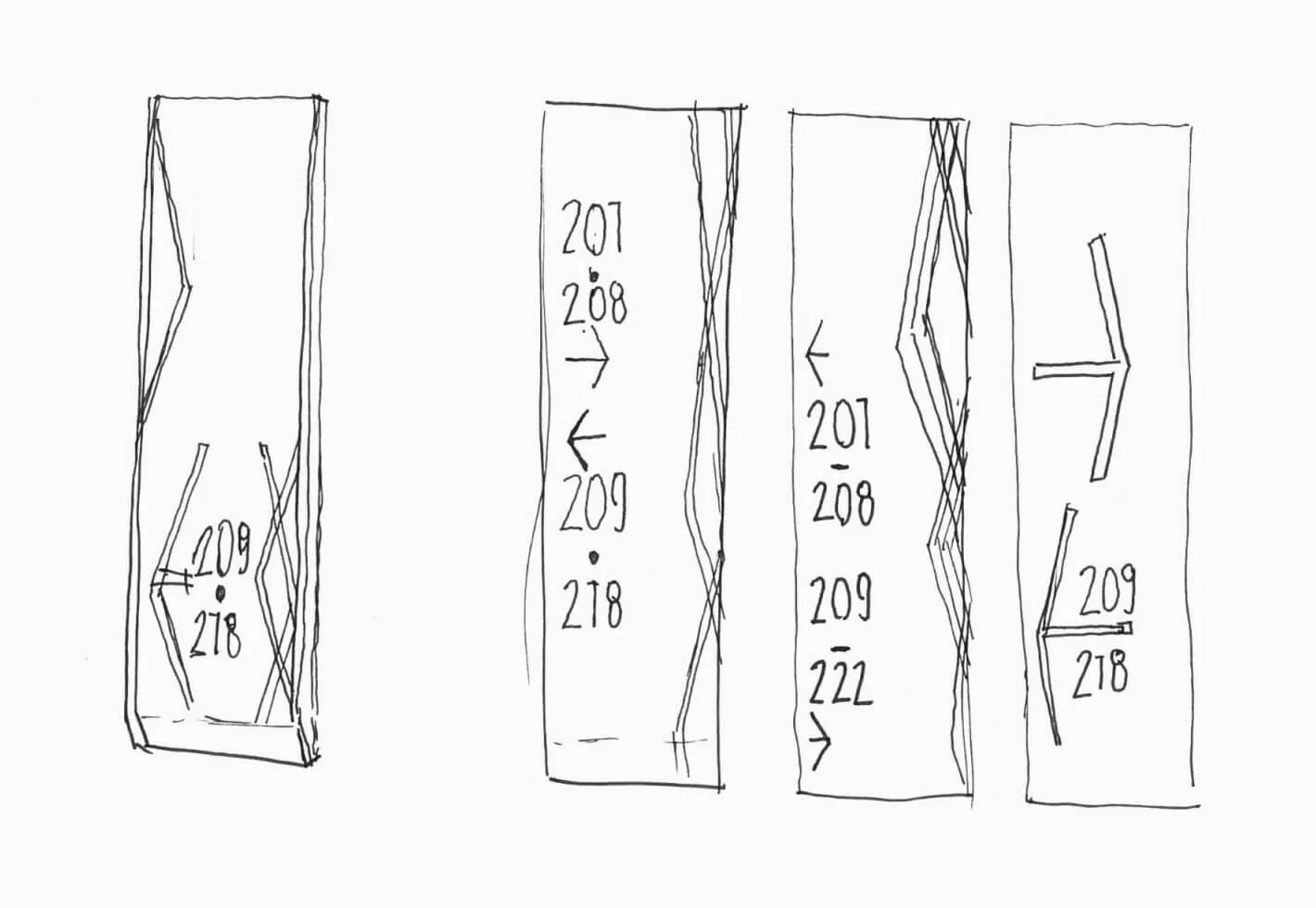 Through exploration of anthropology, history, and mythology, the concept of the loom and its harp-like vertical striations was established due to its significance to the production of textiles and Greek culture. Its unique shape inspired the structural elements of the signage design and became foundational in our approach for the signage master plan.
