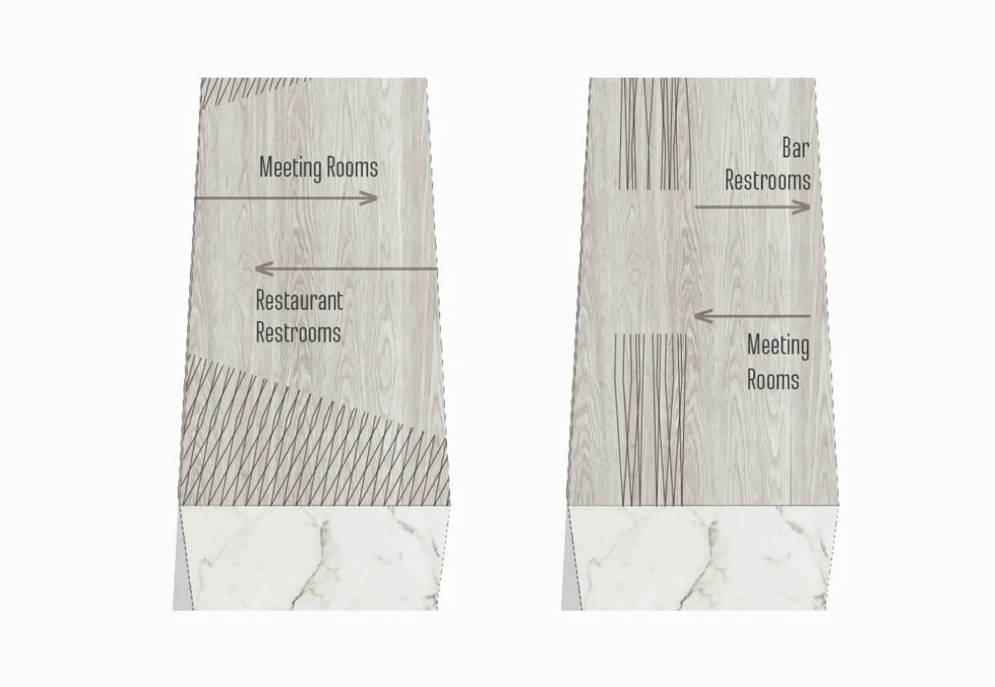 Refined materials and forms create a curated and calm place of solace in both the interior and exterior space. Amenities are identified with distinctive and sophisticated signage, reinforcing the loom concept and providing a tailored experience for each area of the resort.