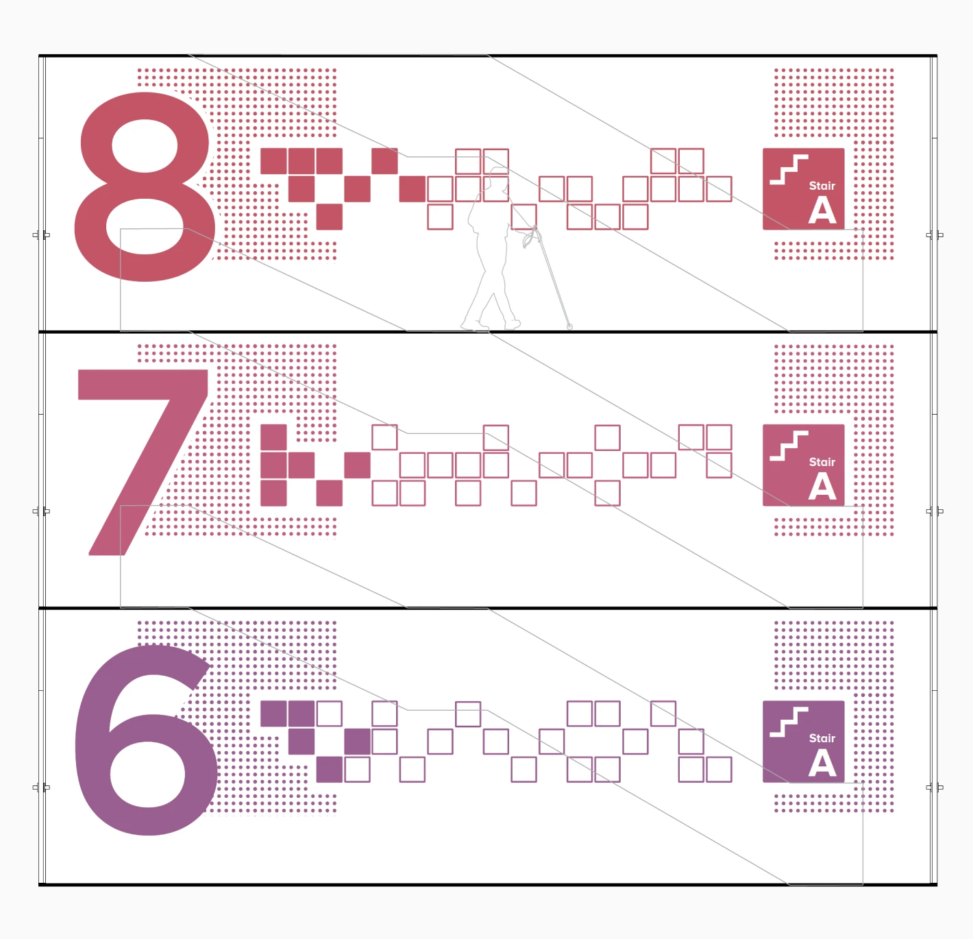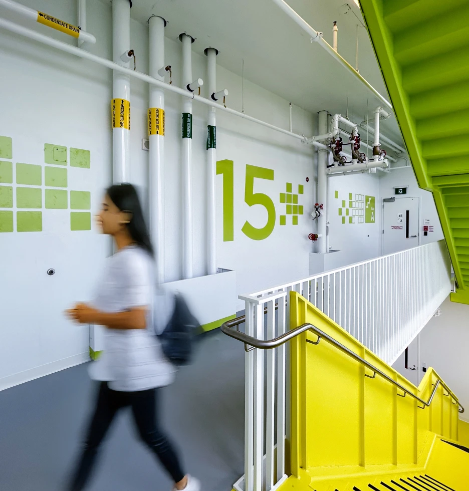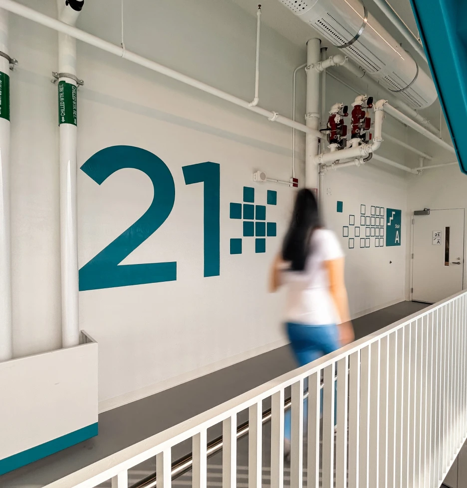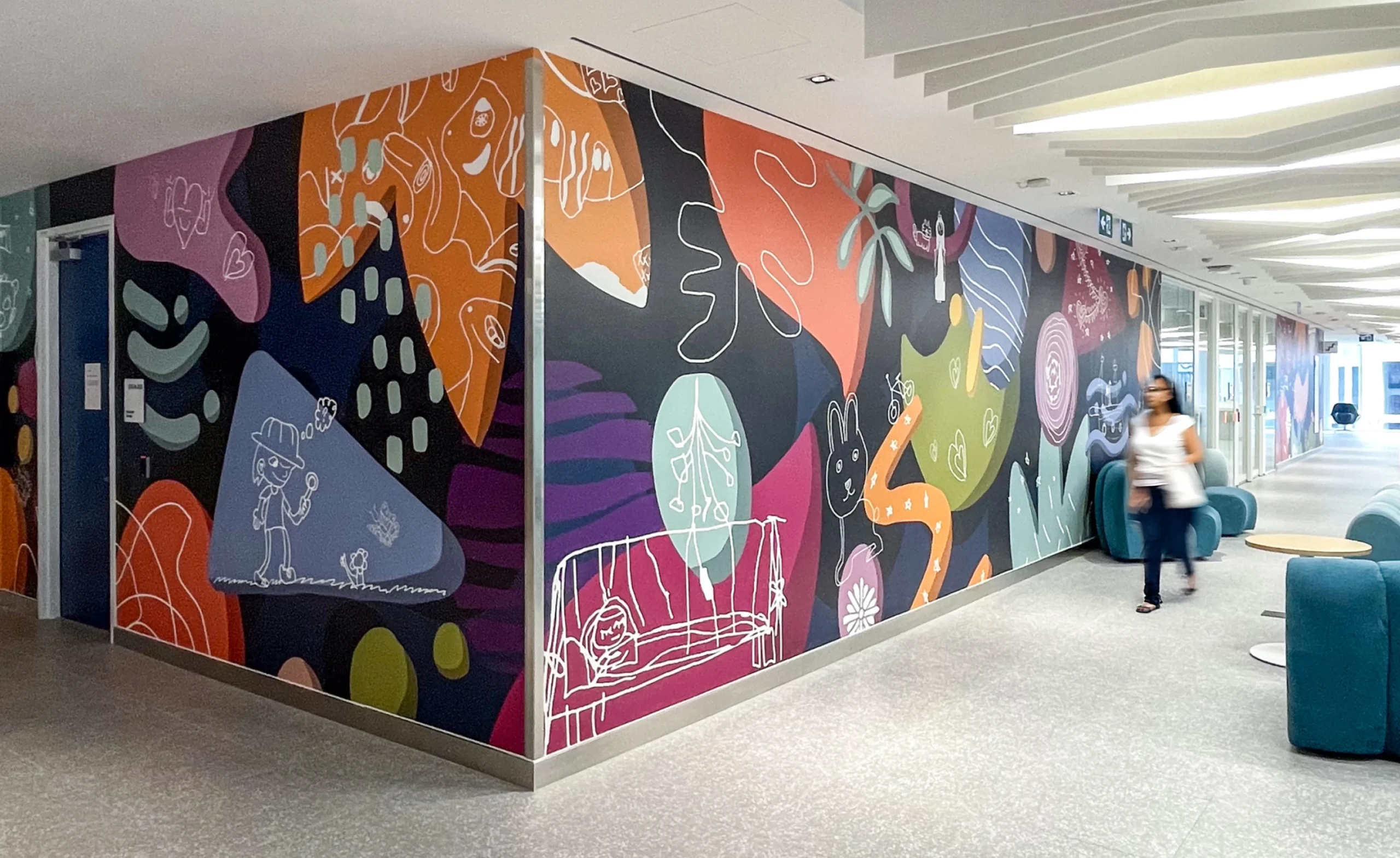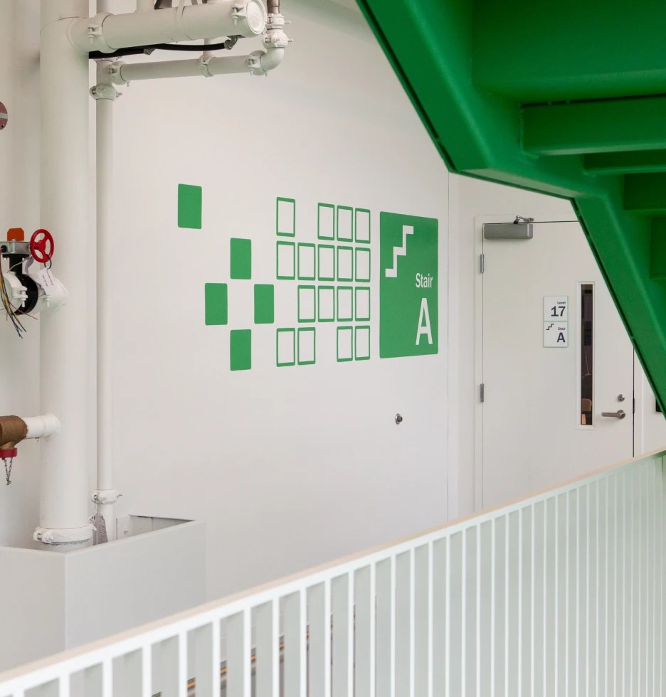 Colour was another layer of the expression of joy and play integrated throughout each level of the building. Working closely with stakeholders, Forge curated hints of colour cues into signage and murals that changed on each floor. Working in harmony with interior design palettes, this journey of colour strengthens the sense of place identity whether at street level or travelling floor to floor.