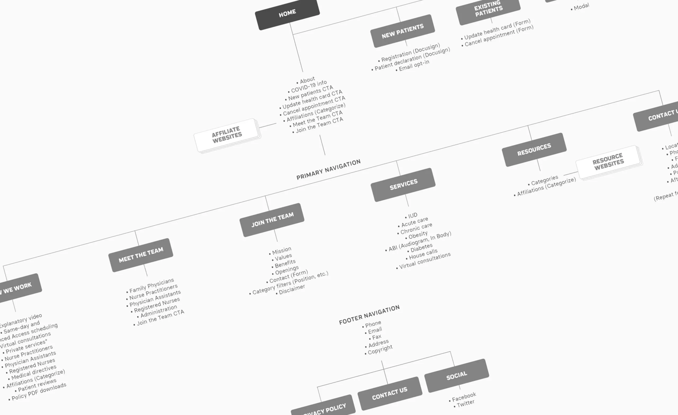 Content strategy sessions were held with the goal of optimizing information and ensuring users are presented with the most appropriate content with minimal effort. Before establishing a visual language, website architecture was established in order to improve communications and create a frictionless browsing experience.